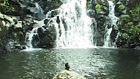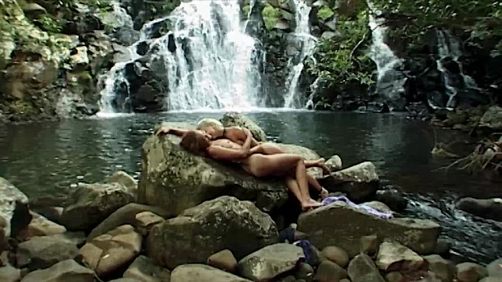 The pretty Stéphie joins the sumptuous Channone near the magnificent tropical waterfall and begins their little caresses while Aymeric and Sandi discreetly move away. (Continuation and end)