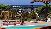 Entre deux tournages, les trois complices passent le temps en jouant avec les rayons du soleil tropical, vous pouvez voir qu'une séance vidéo sur la belle "Isle de France" n'est pas désagréable
