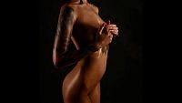 Tania oiled A luscious body and otherworldly breasts for the beautiful tattooed and oiled young girl in the evening shadow (Photos by Philippe Lesage) 4 min Video